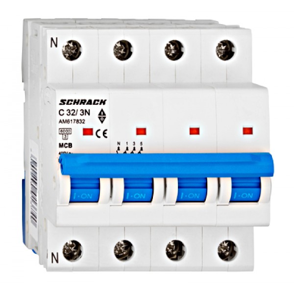 Etichete: Întreruptor automat modular (MCB) AMPARO 6kA, C 32A, 3P+N, SCHRACK, Siguranta tetrapolara Schrack
