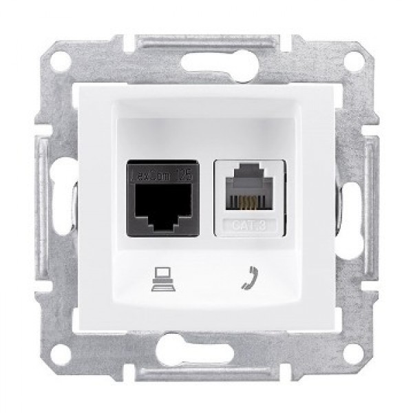 Priza de telefon RJ11 + priza de date RJ45 UTP CAT5E Alba Schneider Sedna
